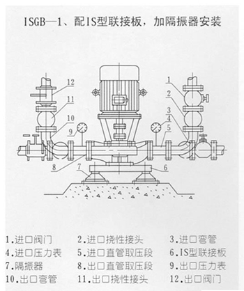 ISGB型便拆立式管道离心泵安装尺寸图: